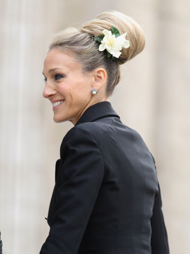 There is something about this row of scarves that I just love...The bun: my new happy hair do - although mine will never be quite as resplendent as SJP's...Daddy has been working alot lately...Have a wonderful, restful weekend...!