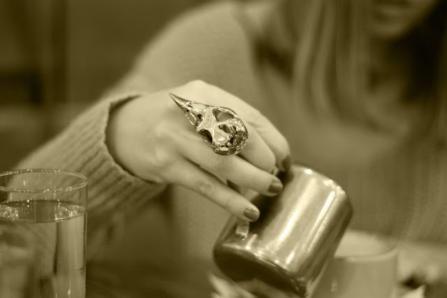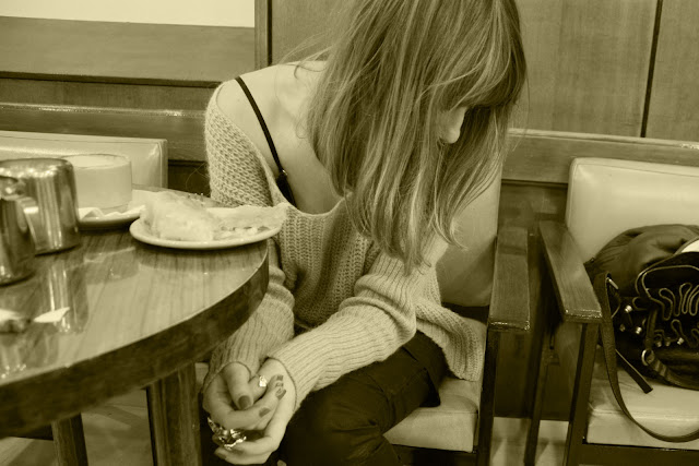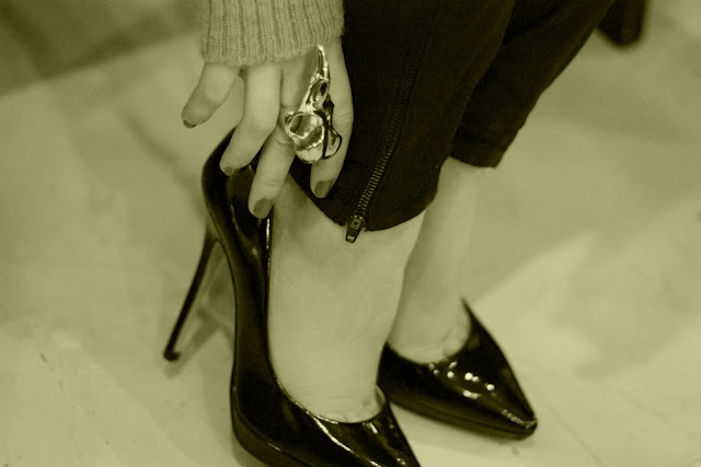 My faithful readers will probably get socked by my decision but in 2011 I decided to be brave concerning my look. In this context I did something I've been wanting to do for a long time and that is to cut my hair to the length of my shoulders. I don't know about the outcome but I'm immeasurably pleased by the fact that I dared to do it. As for the outfit, I also dared to wear a casual sweater, my skinny cargo pants and my classic Jimmy Choo pumps. Hope I didn't break a fashion rule but even if I did no-one noticed cause wearing my new Alexander McQueen ring no-one would notice anything else.